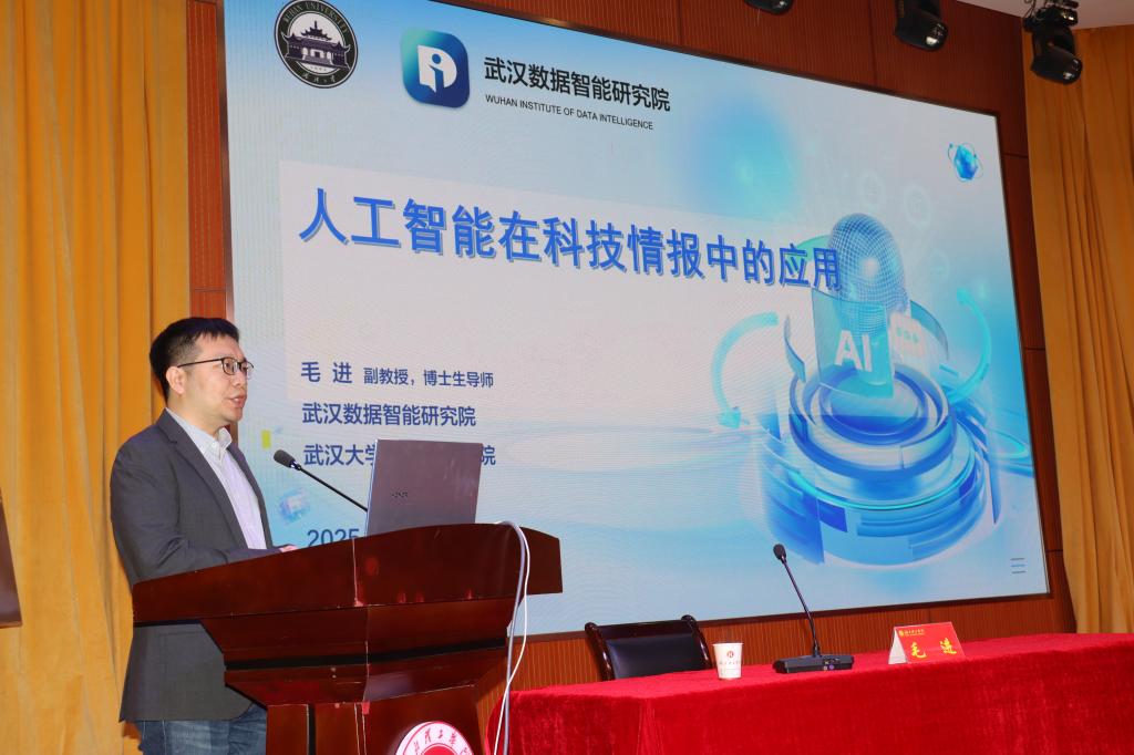 武汉数据智能研究院副院长毛进教授作专题报告。他以《人工智能在科技情报中的应用》为题,从“科技情报新使命”“数智情报体系设计”“数智情报平台实现”三个方面聚焦人工智能赋能科技情报,探讨人工智能在科技情报中的应用。他通过智能AI时代科技创新产业实践与创新生态,展示人工智能技术在科技情报领域的应用前景,强调跨学科融合的重要性。毛进教授希望,通过构建智能化的科技情报体系,能够更好地服务于科研人员和企业决策者,推动科技创新和产业升级。