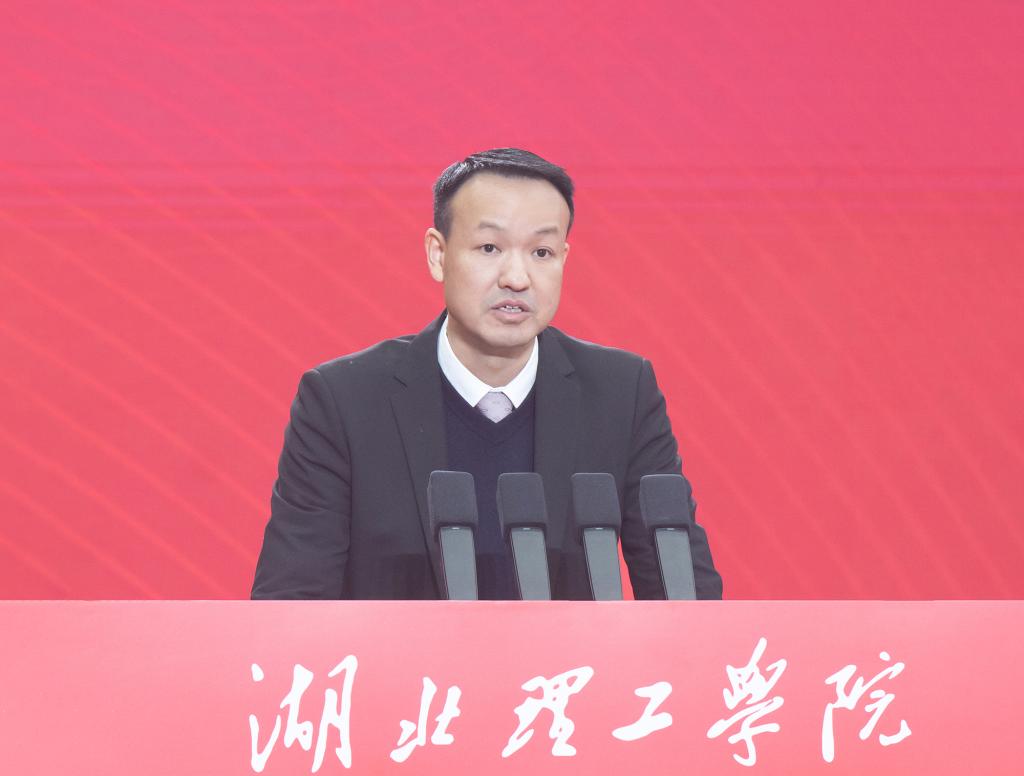 校党委副书记、校长胡国珍作学校高质量发展报告。他指出,学校始终坚守为党育人、为国育才的初心使命,服务国家战略和区域经济社会发展需求,与民族共命运、与时代同呼吸,在荆楚大地书写了开拓奋进的“湖理”精彩答卷。建校以来,学校始终坚持育人为本、质量立校,立足黄石、服务湖北、辐射全国,培养宽口径、厚基础、强能力的高素质应用型人才。虽然校名有更迭,校址有变迁,办学层次有提升,但不变的是对应用型人才培养初心的坚守。如今,学校已发展成为以工为主,工、理、经、管、医、文、教、艺多学科门类协调发展,16个教学院部,2万余名在校生的应用型大学。胡国珍从六个方面总结了学校办学经验:坚持以教育家精神铸魂强师,引领高水平教师队伍建设;坚持服务产业需求,构建以工为主的绿色数智学科专业体系;坚持将创新创业融入专业教育,构建应用型人才培养质量体系;坚持推进产教融合科教融汇学科融通,构建校政行企“四方联动”新格局;坚持开放包容互利共赢,探索双向输出的国际交流合作新模式;坚持党的全面领导,推进党建引领与业务工作深度融合。他强调,在推进学校高质量发展过程中,党的领导是学校发展的根本保证,地方需求是学校发展的动力源泉,育人为本是学校发展的使命所在,改革创新是学校发展的必由之路。面向未来,胡国珍表示,学校将锚定更名湖北理工大学的目标,奋力开启建设特色鲜明的高水平现代化应用型大学新征程。新征程上,学校将始终保持昂扬奋进的精神状态,始终坚守校地协同产教融合的发展路径,始终坚持以改革创新为根本动力,深化教育教学改革,推进科研创新,加强国际交流,为区域发展和教育强省建设作出新的更大贡献。