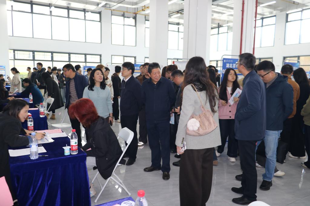 本网消息 3月27日,“湖北百校联动”暨湖北理工学院2026年春季大型供需见面会在学校工程创新实践中心一楼成功举办,校党委书记张方胜、校长胡国珍、副校长蔺绍江到场指导,并与招聘的企业家和应聘的毕业生亲切交流。