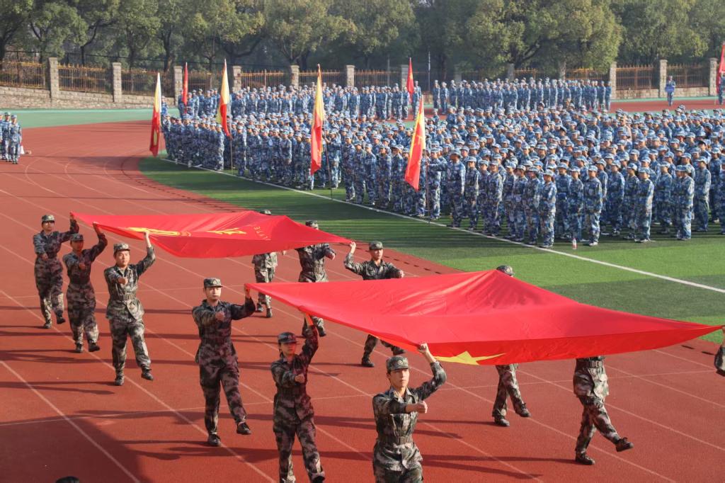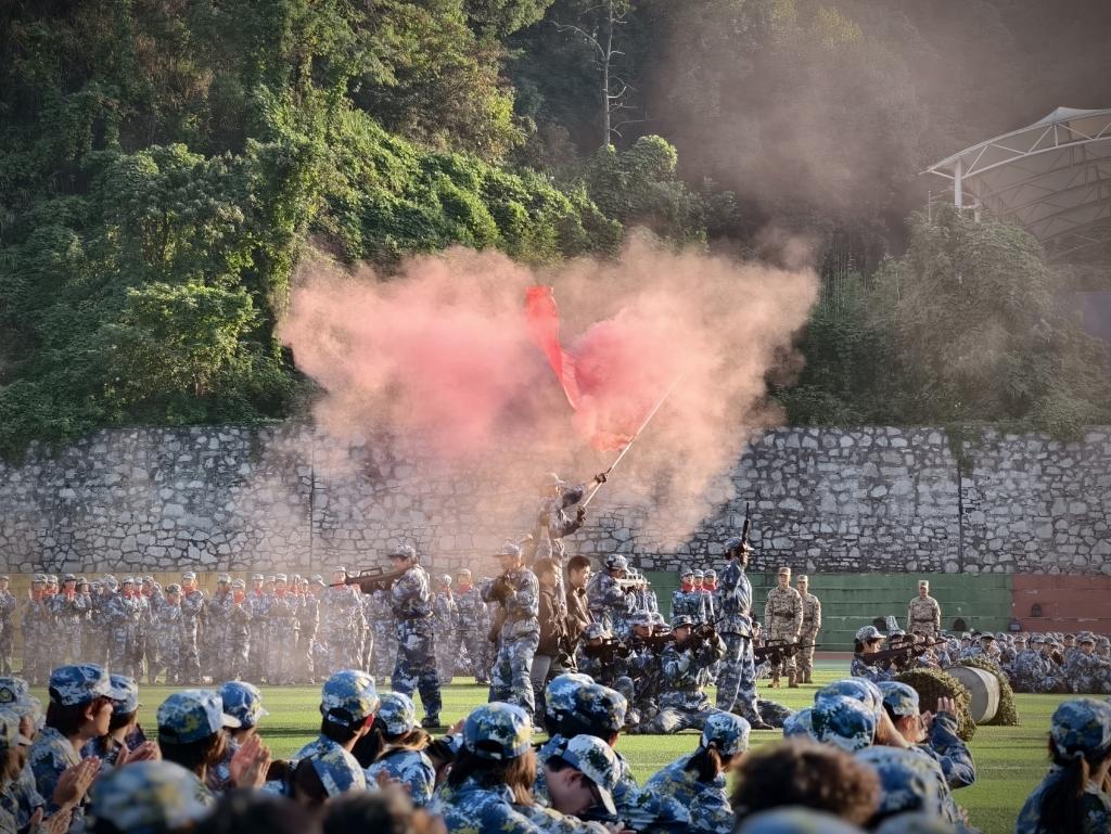 旭日东升,国歌嘹亮,2025级新生军训总结表彰大会在庄严气氛中隆重启幕。