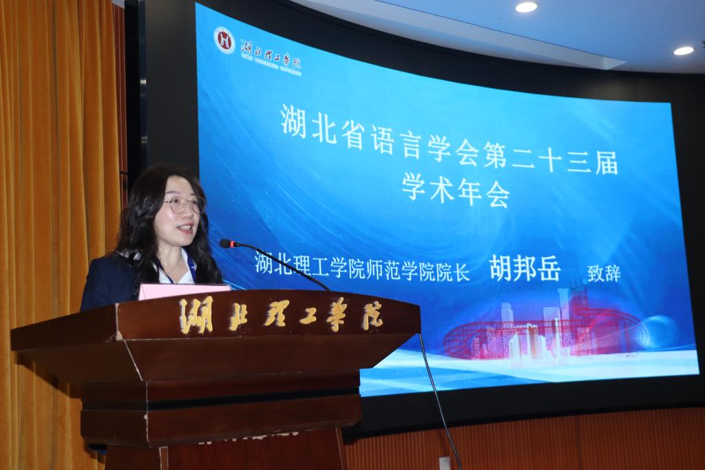 校长胡国珍致辞,向远道而来的嘉宾、专家学者致以热烈欢迎,向关心支持学校发展的语言学界同仁及为年会筹备付出心血的各方朋友表示衷心感谢与诚挚敬意。他简要介绍了湖北理工学院的发展历程与办学概况。他表示,作为以理工见长的高校,理工之精与人文之韵相辅相成,方能行稳致远。语言作为文化基因密码与思维载体,是连接理工与人文的重要桥梁。在人工智能、数字技术深刻重塑人类生产生活与交流方式的今天,语言研究既面临着传承文化根脉的时代使命,更迎来了跨界融合创新的历史机遇。胡国珍强调,此次年会以“语言学研究前沿热点”为核心议题,精准把握了时代发展脉搏,恰逢其时,必将成为凝聚智慧、碰撞思想的学术盛宴。他希望各位专家学者各抒己见、深入研讨,在交流中凝聚共识、启迪新知;湖北理工学院将以此次年会为纽带,学习借鉴专家真知灼见,深化与兄弟院校、科研机构的学术合作,推动语言学研究与学校优势学科深度融合,为传承中华优秀语言文化、服务国家语言战略贡献更多力量。