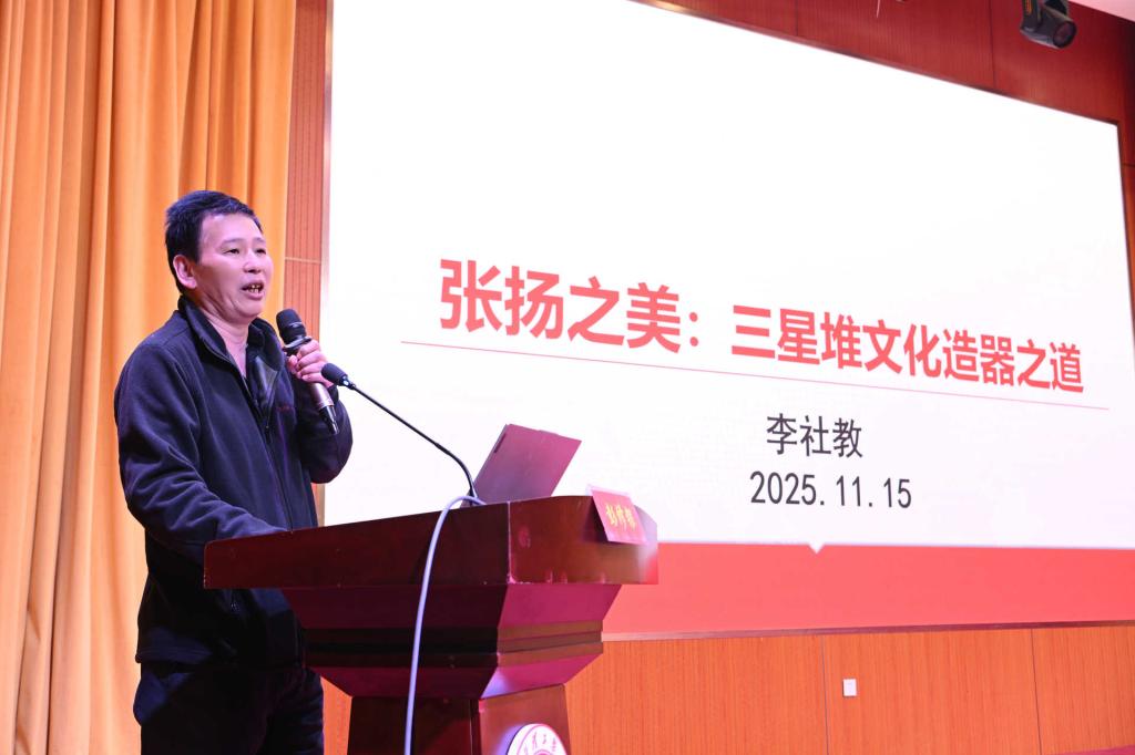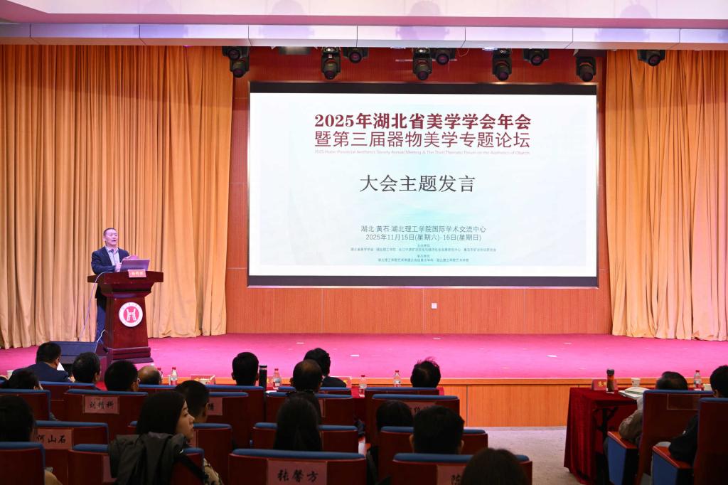 湖北理工学院党委副书记、校长胡国珍致欢迎词。他代表湖北理工全体师生,向远道而来的专家学者致以热烈的欢迎和由衷的感谢。他指出,“艺术学理论”作为省级重点(培育)学科,与学校深厚的工业基因相融合,在工业设计美学、矿冶器物研究等领域形成了独特优势;长江中游矿冶文化与经济社会发展研究中心,更成为挖掘矿冶器物美学价值、传承工业文明的重要研究载体,为学术创新与成果转化提供了有力支撑。本次论坛以“器物美学”为专题,为理工与人文的跨界对话搭建了宝贵平台。本次年会的举办,必将推动各位专家学者围绕数智时代美学转型、器物美学理论深化等议题、凝聚共识;助力我校深化学科交叉、挖掘本土文化价值,为文化创新与设计实践贡献理工力量。