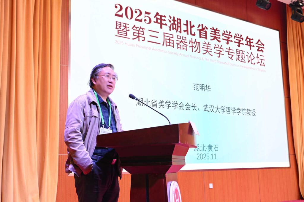 范明华在开幕词中,首先对湖北理工学院的承办工作及会务团队的辛勤付出表示衷心感谢,并深情回顾了六年前在同一地点举办第二届会议的美好记忆。他高度评价了湖北理工学院在器物美学研究领域取得的开创性成就。他强调,在中国作为制造业大国的背景下,深入开展器物美学研究对拓展美学边界、重塑工匠精神和推动制造业发展具有重要价值。为推动该领域形成独立学科体系,他提出四大关键议题:传统器物与现代产品的关系界定、器物美学与相关学科的边界厘清、中国古代器物思想的现代转化、以及人与器物关系的平衡把握——既要发掘其人文价值,也需警惕技术异化风险。他期待与会学者深入研讨,共同推动器物美学研究的创新发展。