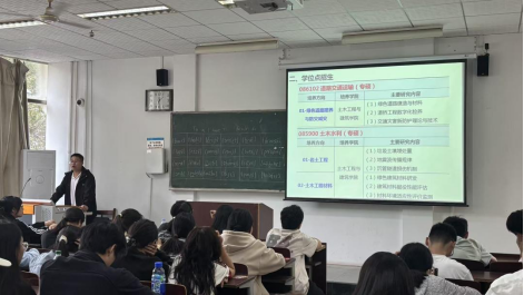 10月13日,武汉轻工大学研究生招生宣讲团在J2-101教室率先开展宣讲。学院相关负责人、辅导员及数百名有志考研的学子参加了活动。宣讲会上,招生团队系统介绍了学校的办学历史、学科布局、科研平台与研究生培养特色,并聚焦土木建筑工程专业,详细解读了其师资力量、研究方向与代表性学术成果,增进了同学们对该校学科实力的整体了解。在政策解读环节,宣讲团就2026年硕士招生专业目录、招生计划、报考条件、考试科目及复试流程等关键信息作了清晰说明,并特别针对我院学生介绍了推免政策、专项计划与奖助体系,为学生科学选报提供了重要参考。
