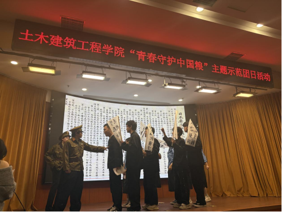 从团歌的铿锵到话剧的震撼,这场团日活动不仅是一次思想的洗礼,更是土木青年"守护中国粮"的集结号。未来,土建学子将以专业为笔、担当为墨,在粮食仓储工程建设、农业基建创新等领域深耕细作,让青春在守护国家粮食安全的实践中绽放绚丽之花,以土木人的坚守与创新,为"中国粮"筑牢坚实的青春防线。(通讯员 樊静)