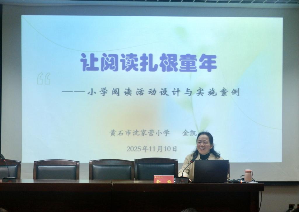 纪念活动结束后,湖北省特级教师、师范学院优秀校友金凯老师为在场师生带来了题为《让阅读扎根童年:小学阅读活动设计与实施》的专题讲座。金老师从“为何阅读活动设计是师范生的必修课”破题,深刻阐释了小学阅读的“儿童立场”,强调其核心在于激发兴趣、培养习惯与提升能力。她系统介绍了从“单篇”到“整本书”的阅读活动设计框架,并分享了“三阶设计法”等实用工具。讲座中,金凯老师结合《小蝌蚪找妈妈》角色扮演、课本剧创编、“文本插画师”等大量生动课例,展示了如何通过游戏化、感官化、跨学科融合的教学设计,让阅读真正“动起来、活起来”。