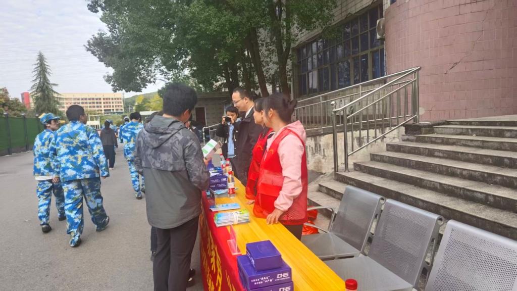 会前医保局专家咨询团队在校医院一楼通过发放医保知识手册、现场一对一答疑等形式,向过往学生普及医保参保范围、缴费标准、报销流程、异地就医备案等相关知识。