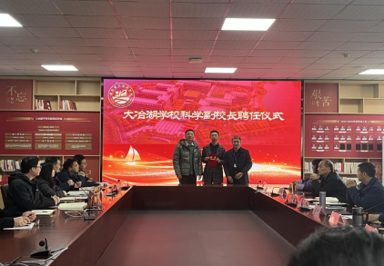 本网消息 12月8日,大冶湖学校举行科学副校长聘任仪式,我校人工智能学院解小雨博士正式受聘担任该校科学副校长。人工智能学院党总支书记高飞、院长余宏生、组织部副部长潘俊,大冶湖学校党委书记明道树、领导班子及教师代表共同参与仪式,仪式由大冶湖学校副校长朱冰松主持。