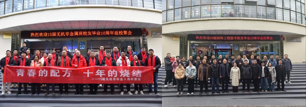 本网消息 岁序更替,华章日新。2026年元旦佳节,校园内暖意融融、温情涌动。2010届材料工程技术班与2015届无机非金属材料工程班的校友们,怀着对母校的深切眷恋与对恩师的由衷感恩,重返阔别已久的校园,与师长同窗共叙情谊,向母校和恩师致以最诚挚的祝福与敬意。新材料与绿色化工学院院长卢小菊、副院长冯伟、先进材料制造与固废资源化湖北省工程中心主任陈跃、无机非金属材料工程专业负责人陈凤及部分教师代表,以及两届班级的班主任和当年任课教师左小华、范方禄、涂传文、靖金球、刘爱红、张世磊等,热情迎接返校的校友们。