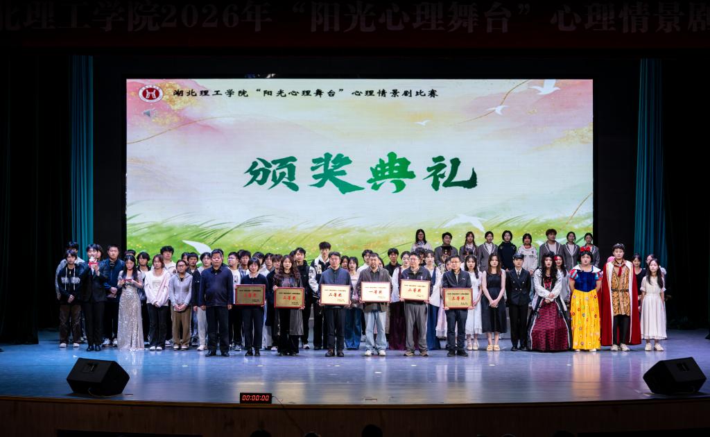 本网消息 聚焦心灵微光,演绎成长力量。4月22日,由学工部主办,大学生心理健康教育中心、校学生会心理健康部承办的2026年“阳光心理舞台”心理情景剧决赛,在黄石市群众艺术馆二楼剧场圆满落下帷幕。党委副书记、副校长冯运仿,学生工作部部长韩幸,各教学院分管学生工作书记、心理辅导员及大学生心理健康教育中心全体人员到场观摩。比赛特别邀请黄石市四所高校心理工作专家担任评委。
