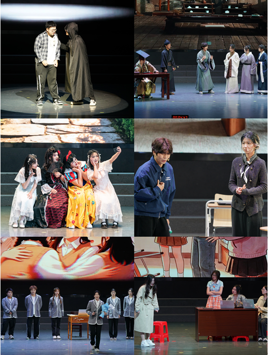 比赛现场,各参赛团队创意纷呈、亮点迭出。医学院带来的《实习华佗的解忧方》以古今对话的形式,生动呈现医学生在临床实习中的焦虑与成长,展现了青年医者从迷茫到坚定的心灵蜕变;计算机学院的《瑕玉》通过主角与象征完美主义的“玉”达成和解,赋予“玉不琢不成器”新的内涵——真正的“成器”并非毫无瑕疵,而是悦纳真实的自己;土建学院的《真我》以AI机器人替身为切入点,深入探讨社交恐惧与自我认同问题,凭借富有创意的舞台设计,有力传递出“不必借他人之光,不必替完美而活”的核心主题。电气学院、新材化学院、艺术学院的剧目也各有巧思:有的诠释破茧而生、向阳而行的力量,有的展现挣脱容貌焦虑与内耗枷锁的历程,有的演绎宿舍矛盾从冲突到和解的成长故事。演员们以真挚的表演和饱满的情感,将当代大学生的心理困惑与成长力量刻画得淋漓尽致,赢得台下阵阵掌声与喝彩。