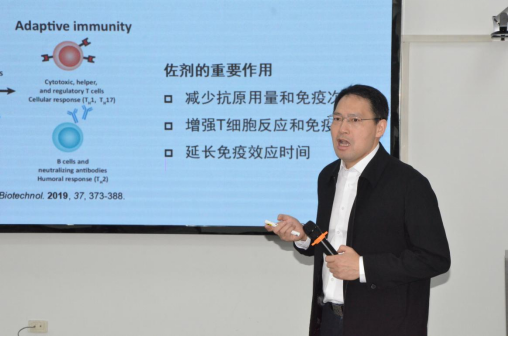 首位报告嘉宾、华中师范大学“楚天学者”特聘教授郭军以《新佐剂及其在疫苗中应用》为题,深入剖析了亚单位疫苗研发中佐剂技术的关键突破。他分享的创新性佐剂策略,为开发更高效、更安全的预防性与治疗性疫苗提供了全新思路,引发了与会者的热烈讨论。